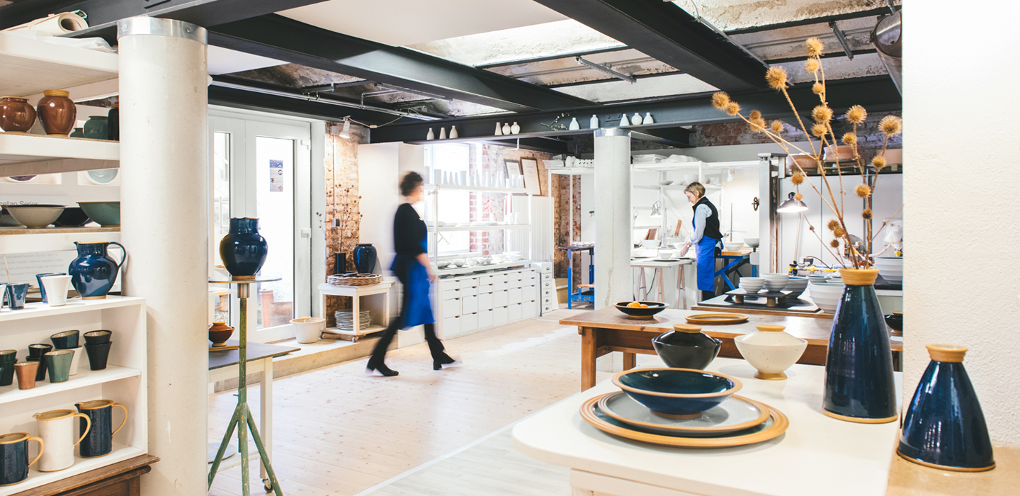 Im pulsierenden Herzen der Stadt produzieren wir in unserer sympathischen Souterrain-Werkstatt Keramik und Porzellan vor allem für den gedeckten Tisch. Aber nicht nur. 1991 starteten wir Gründerinnen Barbara Heigert und Cornelia Möbs mit Herz, Verstand und unserem mittlerweile klassischen Steinzeug-Geschirrprogramm. Inzwischen in der Haidhausener Kirchenstraße schreiten wir als Gestalter-Team ideenreich und voller Leidenschaft gemeinsam durchs Arbeitsleben. Geprägt von Meisterschule, Gestalterausbildung und Horizont erweiternden Studienaufenthalten in England, Japan, Italien.