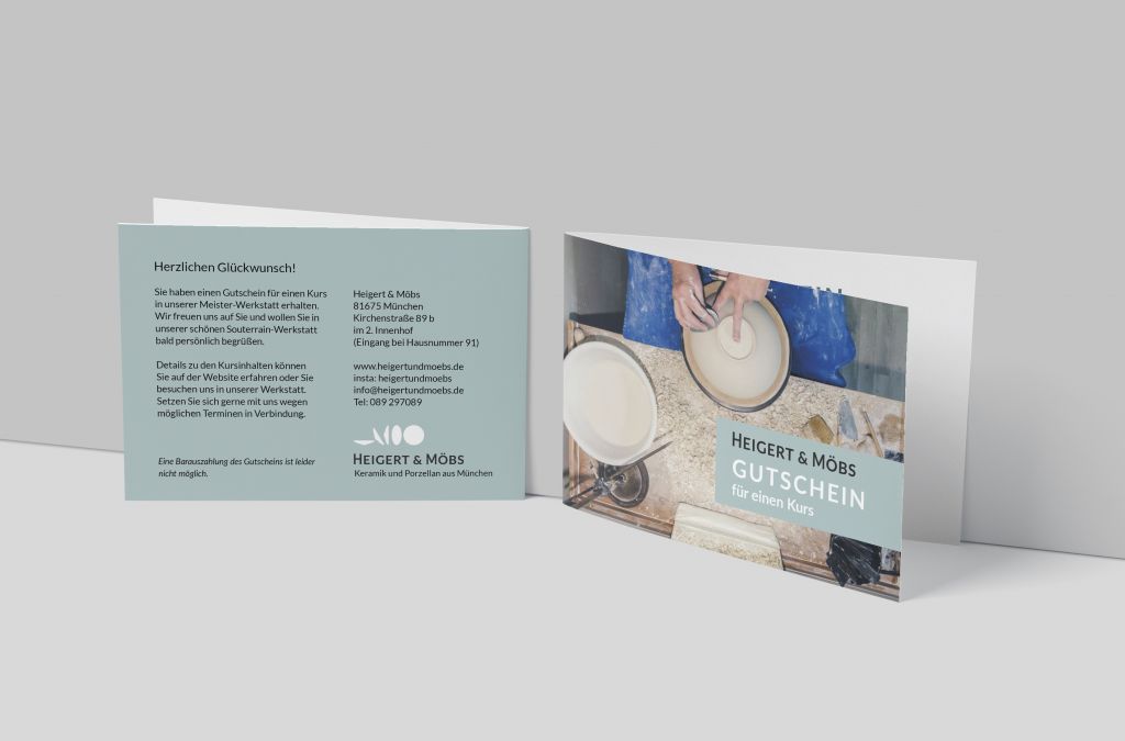 Schön gestaltete Gutscheine können Sie in 2 Varianten erwerben: einen für Keramik und Porzellan, einen für Kurse. Über das Sortiment informieren Sie sich gerne auf dieser Webseite, oder Sie besuchen uns in unserer charmanten Werkstatt. Näheres zu den Kursen finden sie hier. Zum Kauf eines Gutscheins füllen Sie einfach ⇣ nachstehendes Bestellformular aus. Wir senden Ihnen dann eine Rechnung und den Gutschein per Post an Sie oder die andere Person. Falls es mal dringend ist, schicken wir Ihnen den Gutschein auch als Pdf-Dokument.