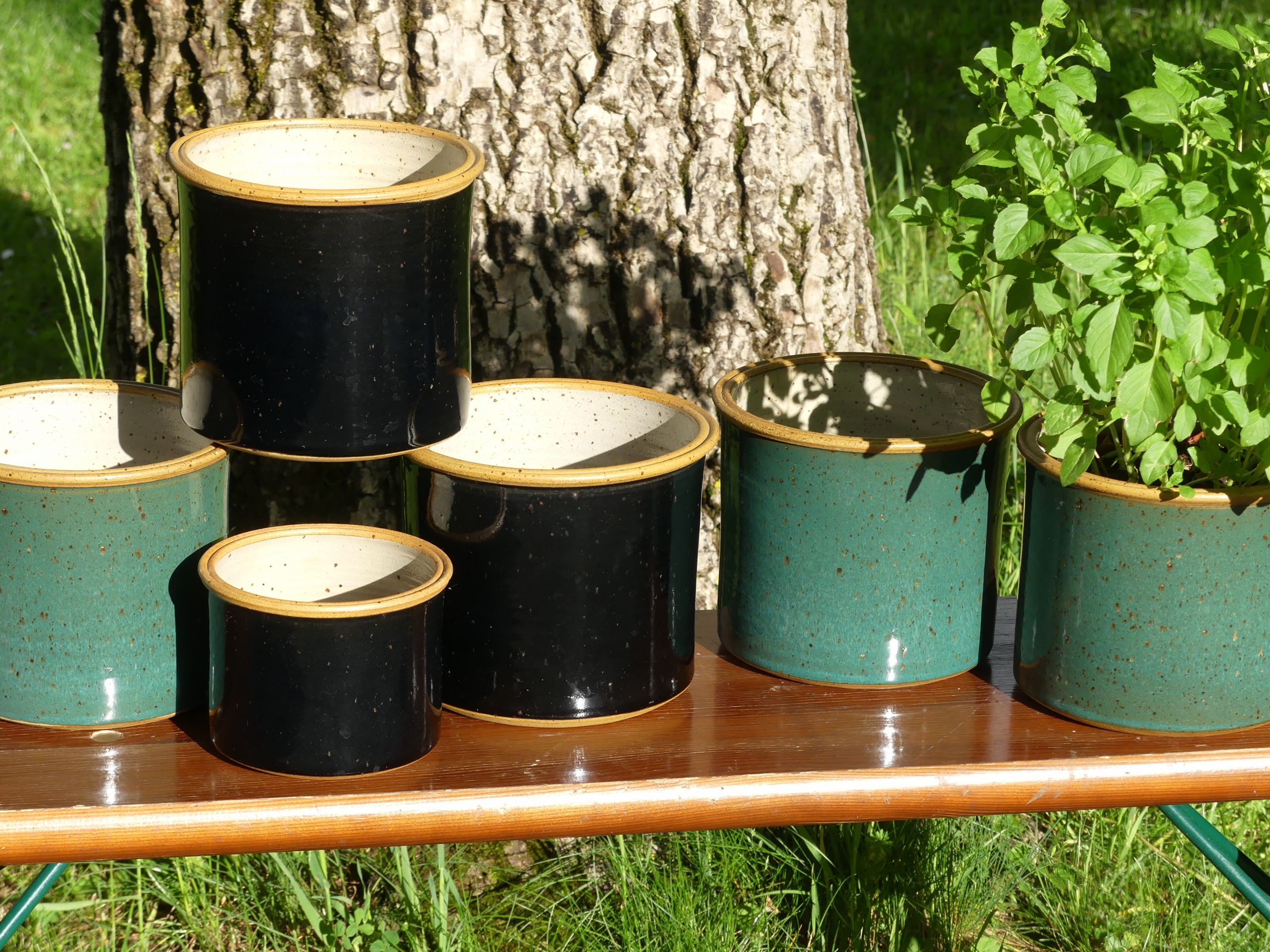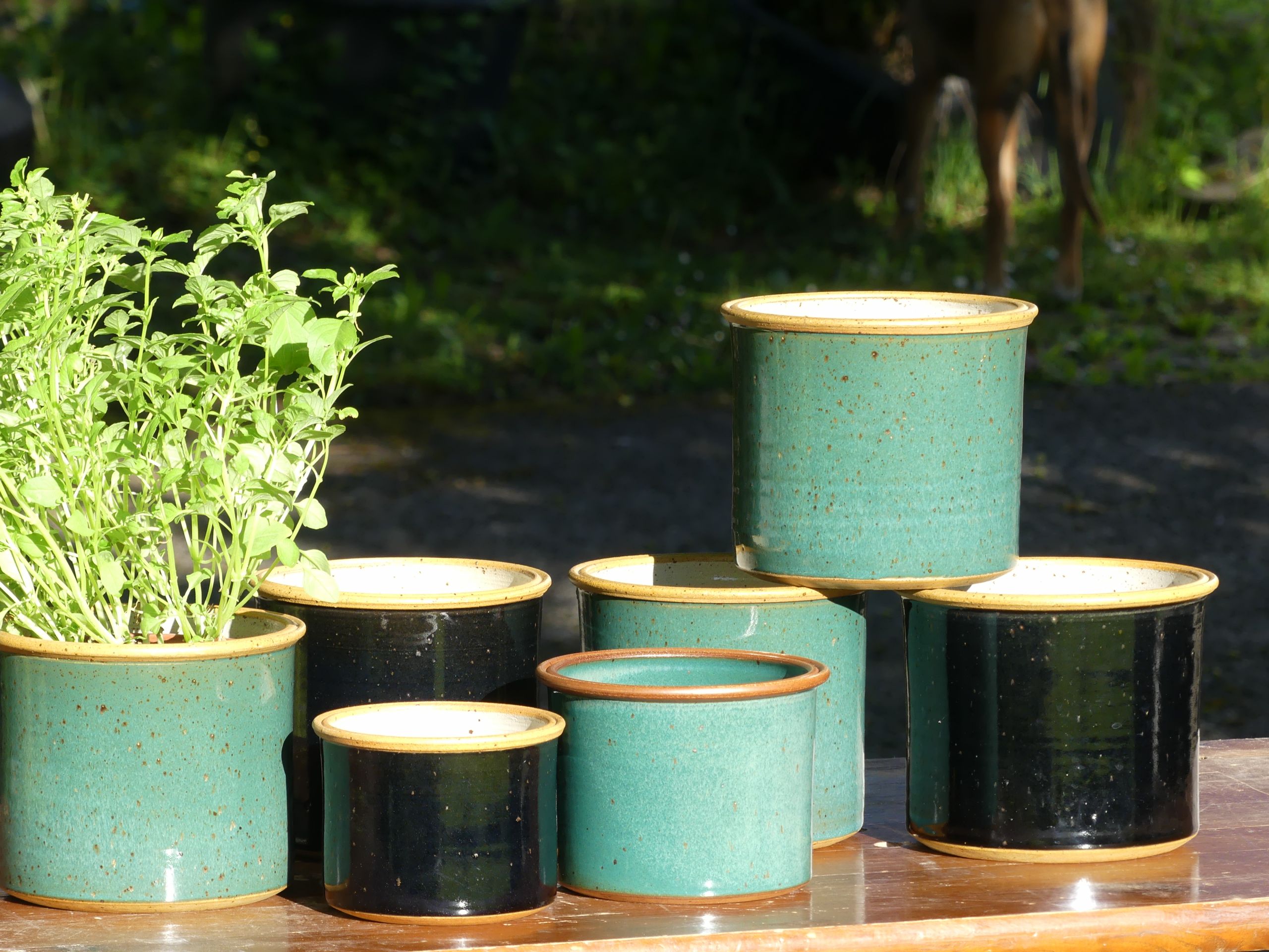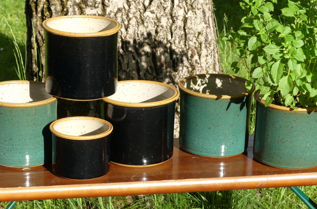 Vorher vermessen Sie zuhause das Töpfchen ihres liebsten Küchenkrauts (Höhe, Durchmesser oben und unten) und suchen sich dann bei uns eine schöne Glasurfarbe aus. Während Sie zuschauen können, drehen wir live und gratis einen hübschen Übertopf für Ihr kleines Küchengrün. Weil wir schon lange einen Beitrag gegen die gestalterische Tristesse auf manchen Fensterbänken leisten wollen.