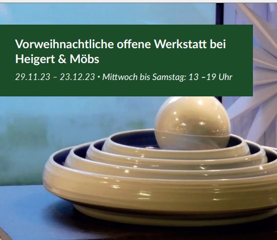 In unserer charmanten Arbeitsheimat präsentieren wir schöne Geschenkideen zum Fest. Außerdem warten auf Sie unsere zur Tradition gewordenen hausgemachten Vanilletaler, schöner Tee – und wie üblich ein heißes Überraschungs-Etwas aus unserem Brennofen.