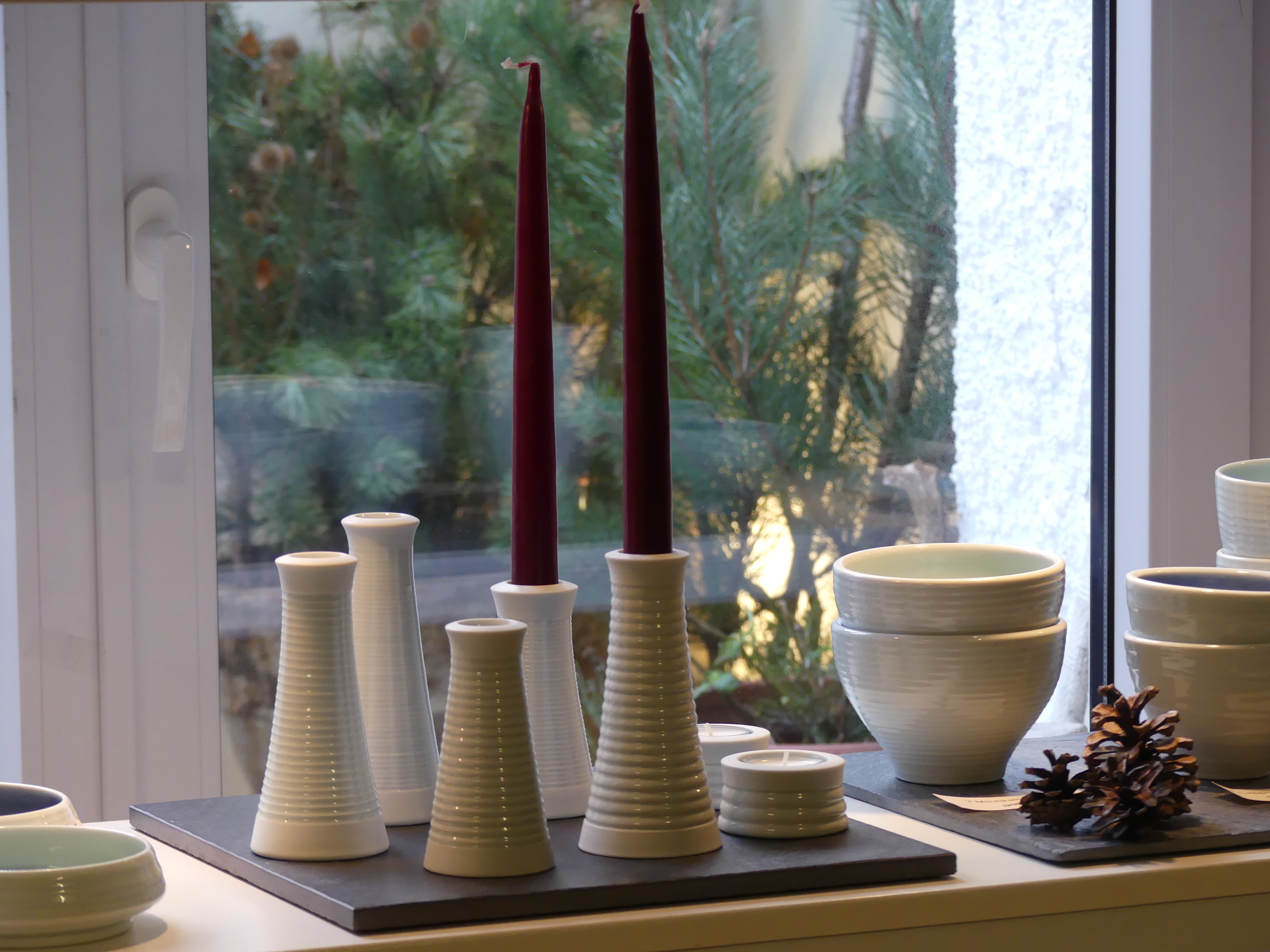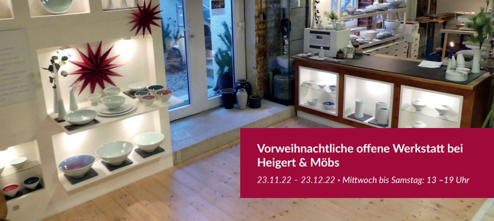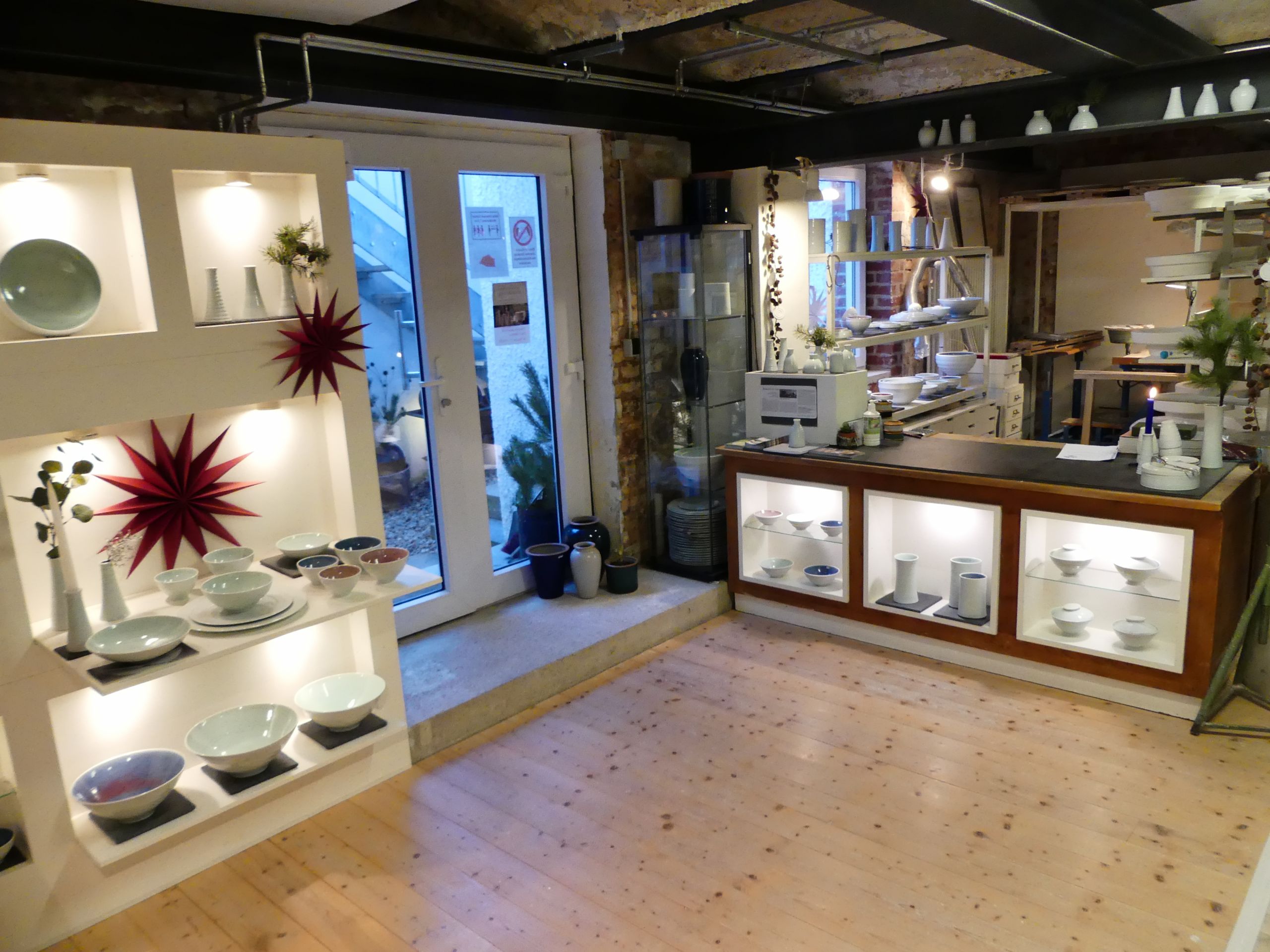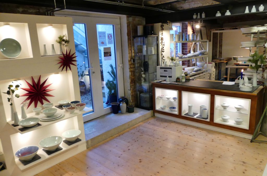 In unserer geschätzten Arbeitsheimat präsentieren wir schöne Geschenkideen zum Fest. Außerdem warten auf Sie unsere zur Tradition gewordenen hausgemachten Vanilletaler, schöner Tee – und wie üblich ein heißes Überraschungs-Etwas aus unserem Brennofen.